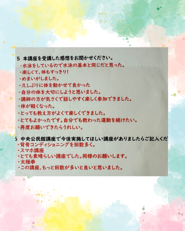アンケートに書いてくださった方も